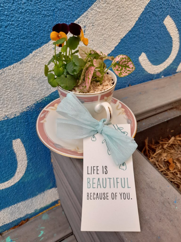 “Lovely surprise to find this beautiful teacup on front porch. Lovely reminder that simple gestures can be so endearing.” Sarah